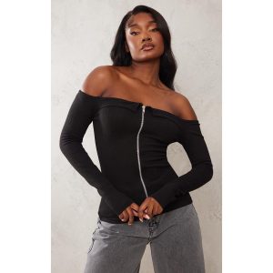 Tall – Top côtelé noir à col et zip