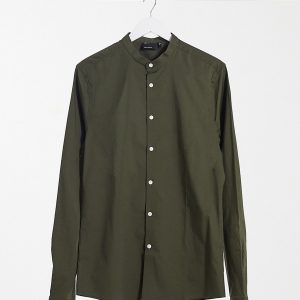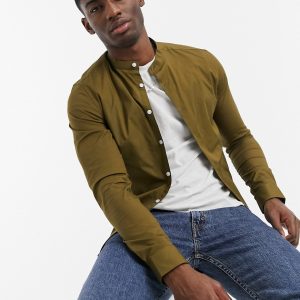 Chemise ajustée avec col grand-père – Kaki vert – Homme grand