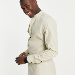 Chemise ajustée avec col grand-père – Taupe sans opinion – Homme grand