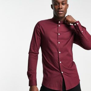 Chemise ajustée avec col officier – Bordeaux rouge – Homme grand