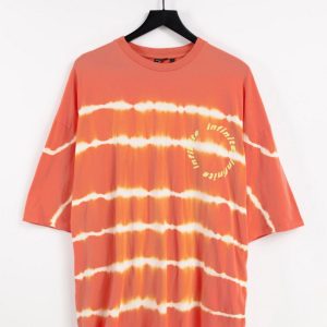 T-shirt oversize à rayures avec broderie sur la poitrine – Tie dye orange – Homme grand