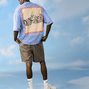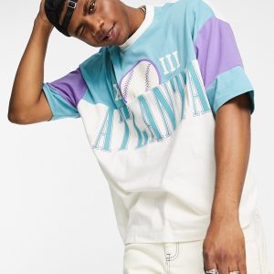 T-shirt oversize color block à imprimé ville Atlanta – Bleu et écru multicolore – Homme grand