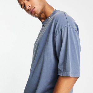 T-shirt oversize en coton biologique mélangé bleu marine délavé – Homme grand