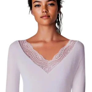 Tee-shirt blanc femme manches longues et col dentelle