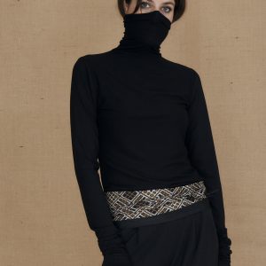 Black fine viscose jersey turtleneck for women WONDER