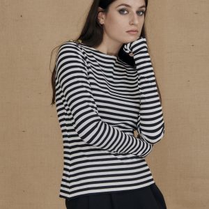Black and white striped long sleeve viscose jersey t-shirt for women CORTO