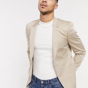 Blazer ajusté en coton – Taupe neutre – Homme grand