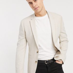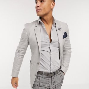 Blazer ajusté en lin gris – Homme grand
