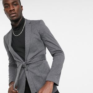 Blazer en jersey ultra skinny à ceinture – Anthracite gris – Homme grand