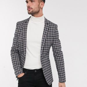 Blazer légèrement ajusté à carreaux vichy marron – Homme grand