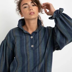 La blouse de créateur KAMI oversize en voile de coton séduit par son col en V, ses nervures et ses manches bouffantes. Une pièce audacieuse et légère, idéale pour sublimer vos looks printaniers avec élégance et personnalité. une pièce unique par Okada Paris.