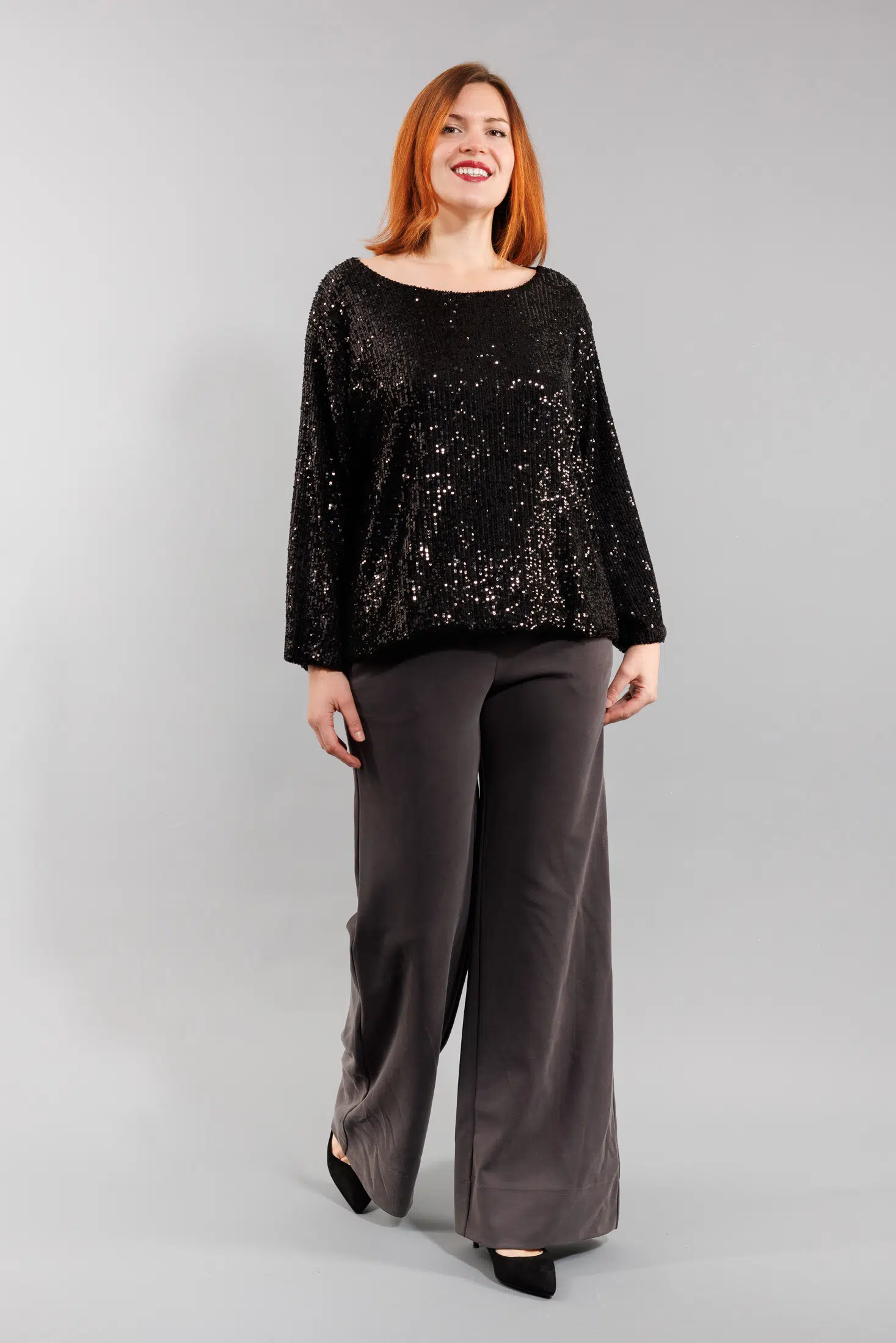 • Cette blouse noire à paillettes grande taille est un parfait mélange d’élégance et de modernité