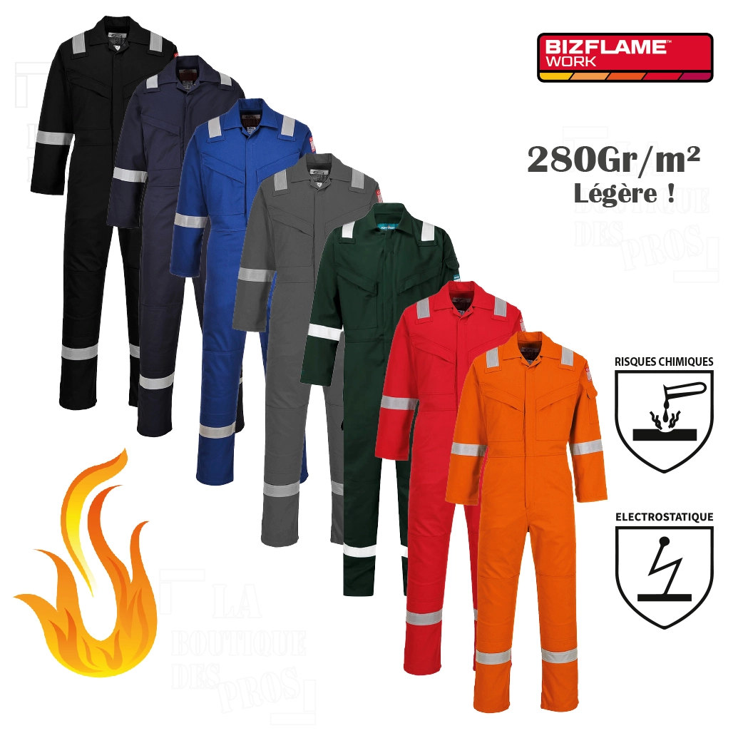 Combinaison fabriquée à partir du tissu BizFlame work plus résistant aux flammes, innovant et très léger. Cette combinaison est aussi antistatique.
