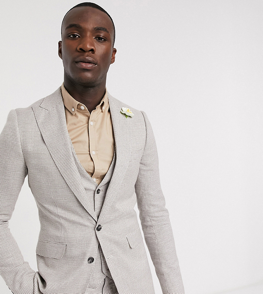 Gianni Feraud Tall – Veste de costume ajsuté motif pied-de-poule marron – Homme grand