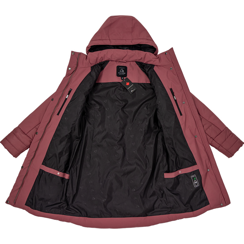 Ce manteau isolé grande taille pour femme est conçu au Québec.
