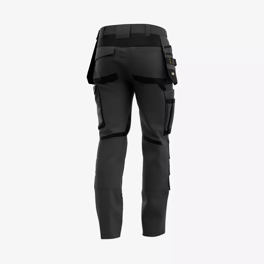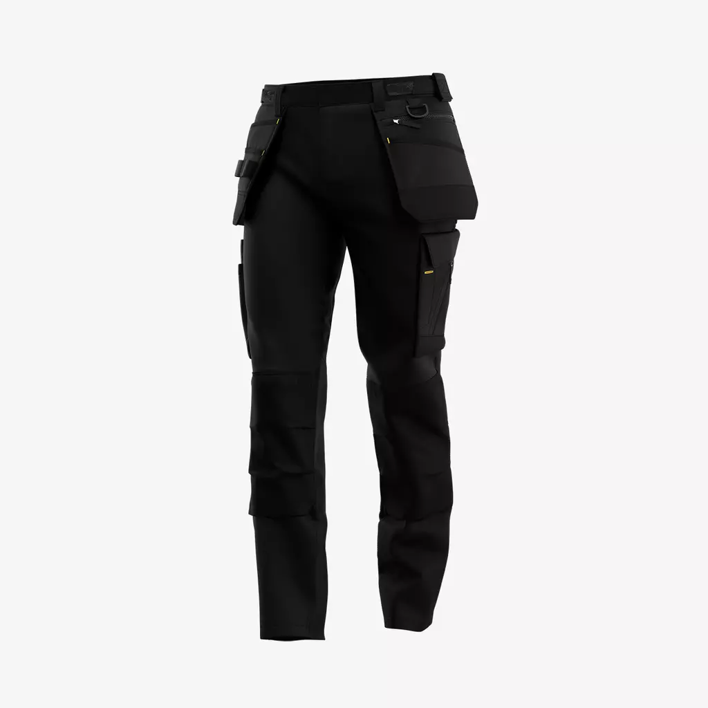 Pantalon de travail confortable conçu pour s’adapter à vous et à votre travail. Le pantalon ALKES est doté de plusieurs poches polyvalentes et renforcées, poches étui fixes, d’une boucle pour marteau et d’un anneau en D pour un rangement pratique d’outils et d’effets personnels. La taille élastiquée et la fermeture Velcro réglable sur le côté assurent une coupe confortable, alors que le tissu extensible en 4 sens à des endroits stratégiques et les genouillères ergonomiques suivent tous vos mouvements. Il est également doté de poches de protection renforcées au niveau des genoux avec des détails réfléchissants et un boutonnage caché qui ne gêne pas et évite d’endommager des composants délicats.