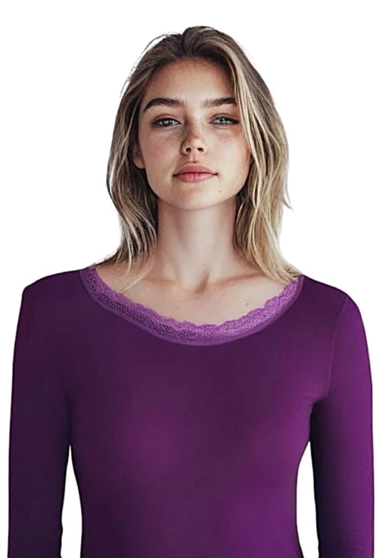 Tee-shirt couleur prune à manches longues col et dos en dentelle