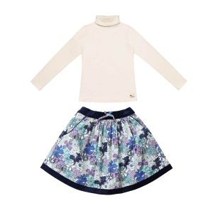 Veste Croisée Fille | Coton Beige Imprimé Lapins Multicolores | JOSEPHINE