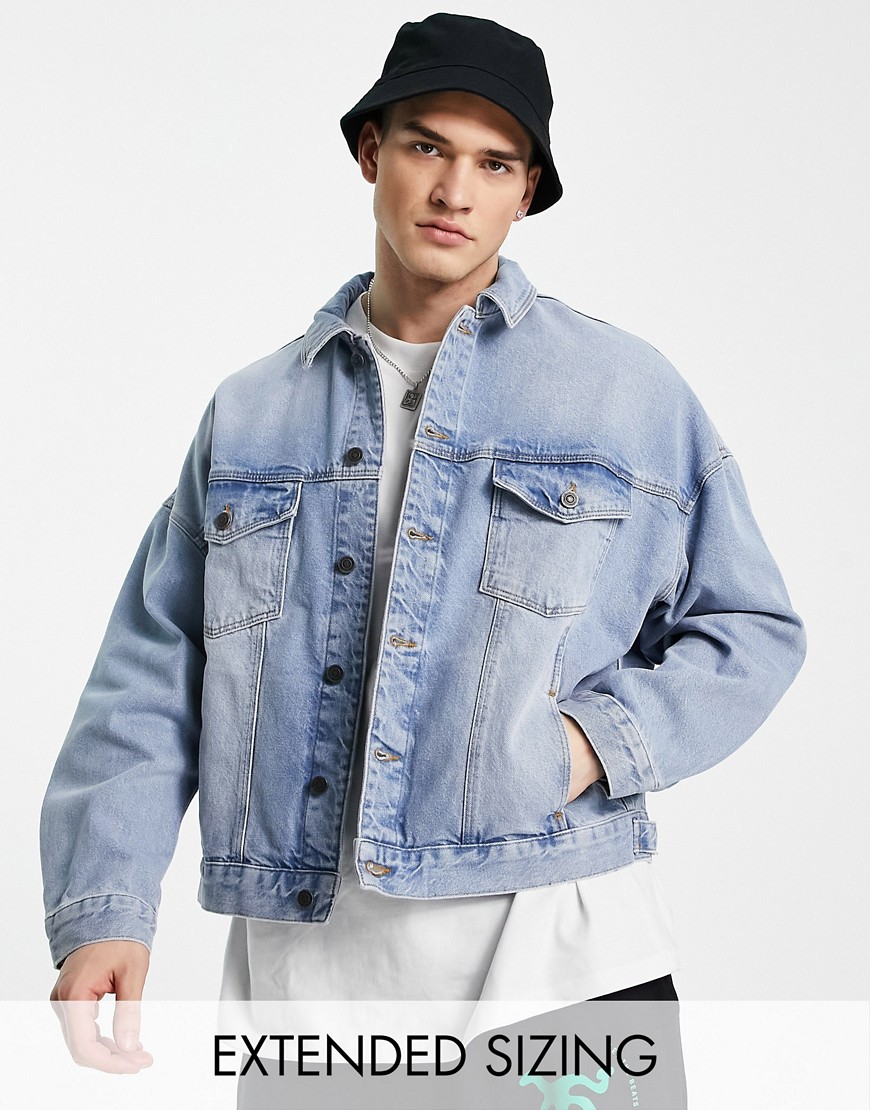 Veste en jean oversize bleu moyen délavé vintage – Homme grand